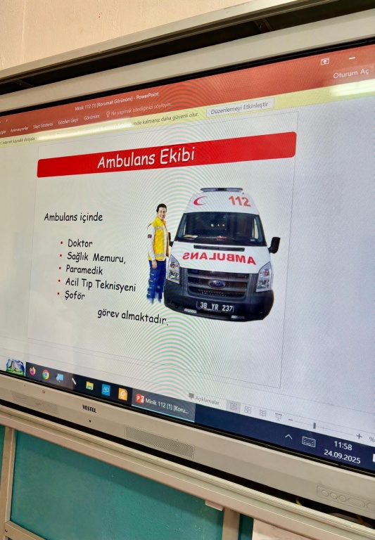 2024-2025 Eğitim Öğretim yılından itibaren uygulanmaya başlayan Ailemle Eğitim Yolculuğum projesi kapsamında okulumuz 4/D sınıfı, Tecrüben Yol Göstersin adlı etkinliği yaptı. Bu etkinlikte 112 Acil Sağlık ekibinde çalışan öğrenci velileri öğrencilere ilkyardımın önemi, ilkyardım uygulamaları, 112 Acil Sağlık Hizmetleri nelerdir, 112 Acil Sağlık ekibi kimlerden oluşur, 112 Acil Sağlık ekibinin görevleri nelerdir konularında bilgi verdi. Bu etkinlikle öğrenciler 112 Acil Sağlık Hizmeti ve ambulanslarla ilgili merak ettikleri soruları sorma fırsatı bulurken, öğrencilerde çevrelerinde yer alan tüm bireylerin çocuklar için güzel örnek teşkil etmesine yönelik bir mesuliyet bilinci oluşması sağlanmış oldu.