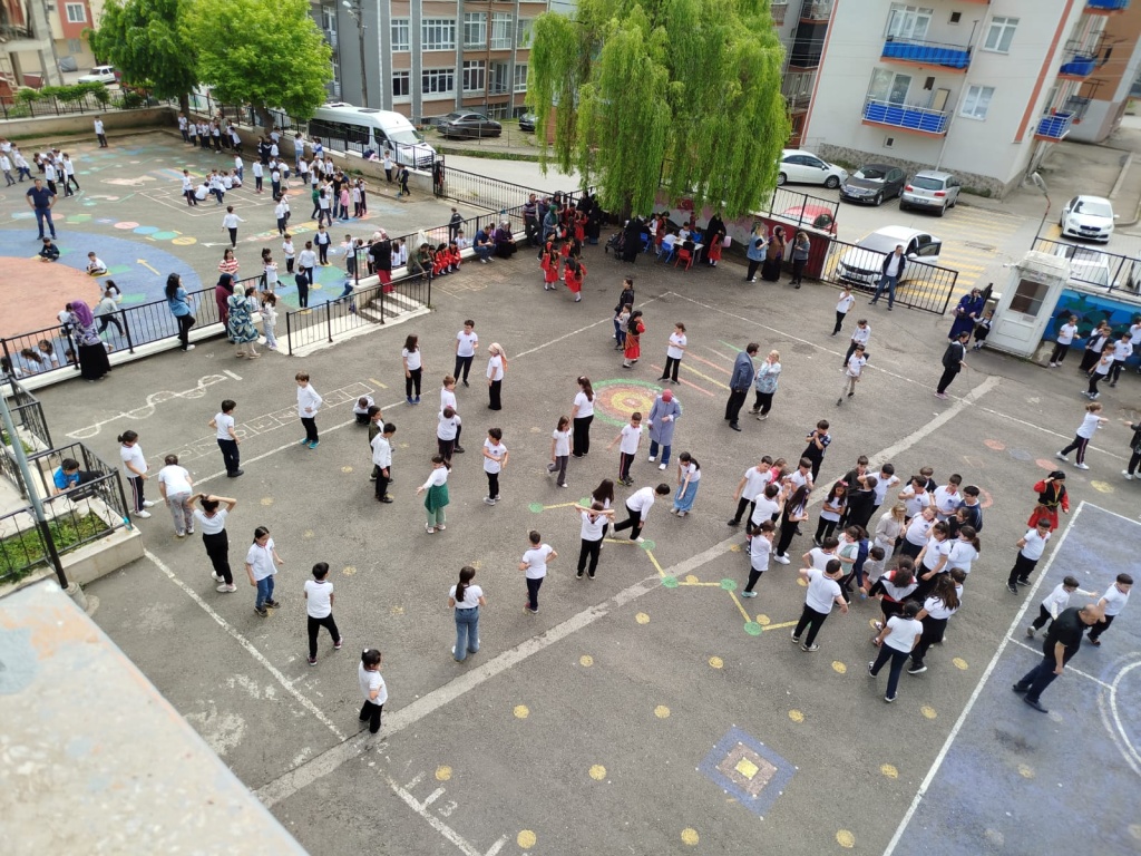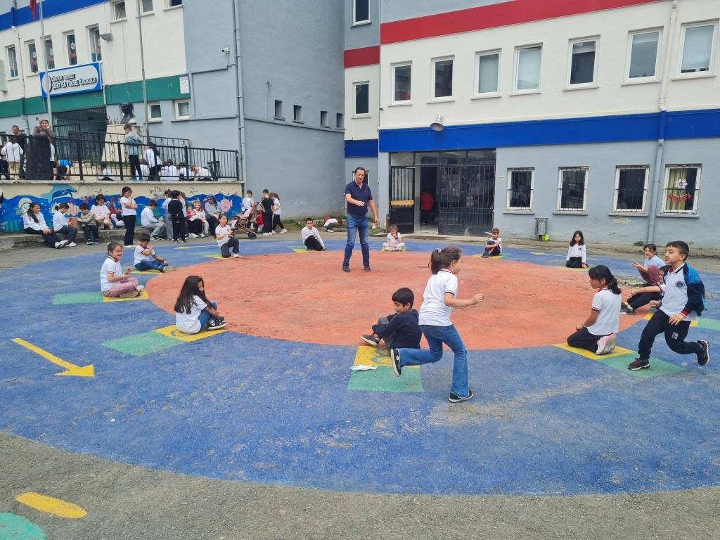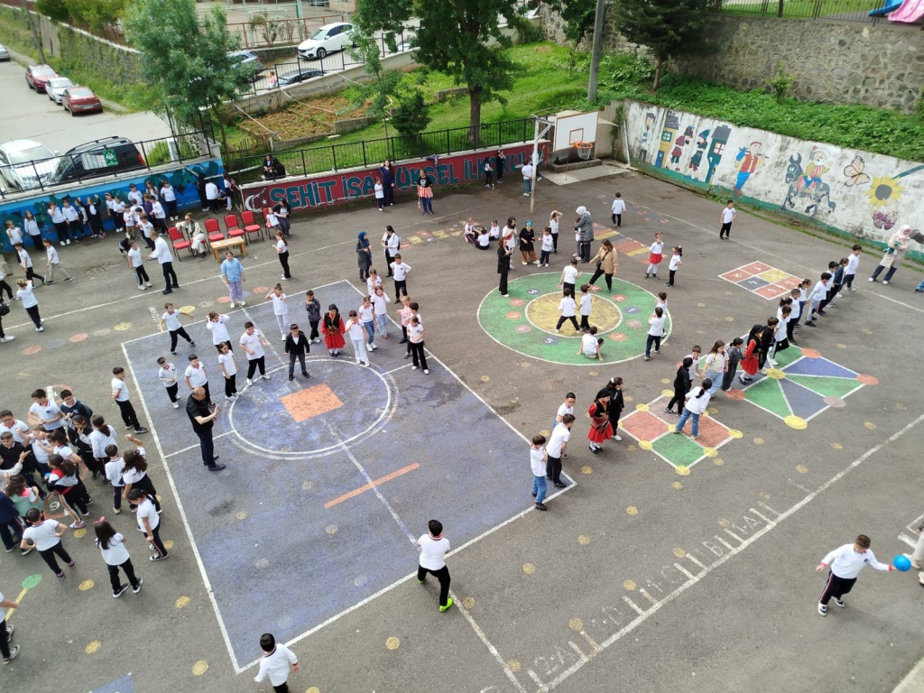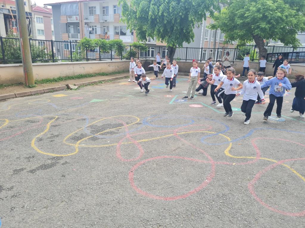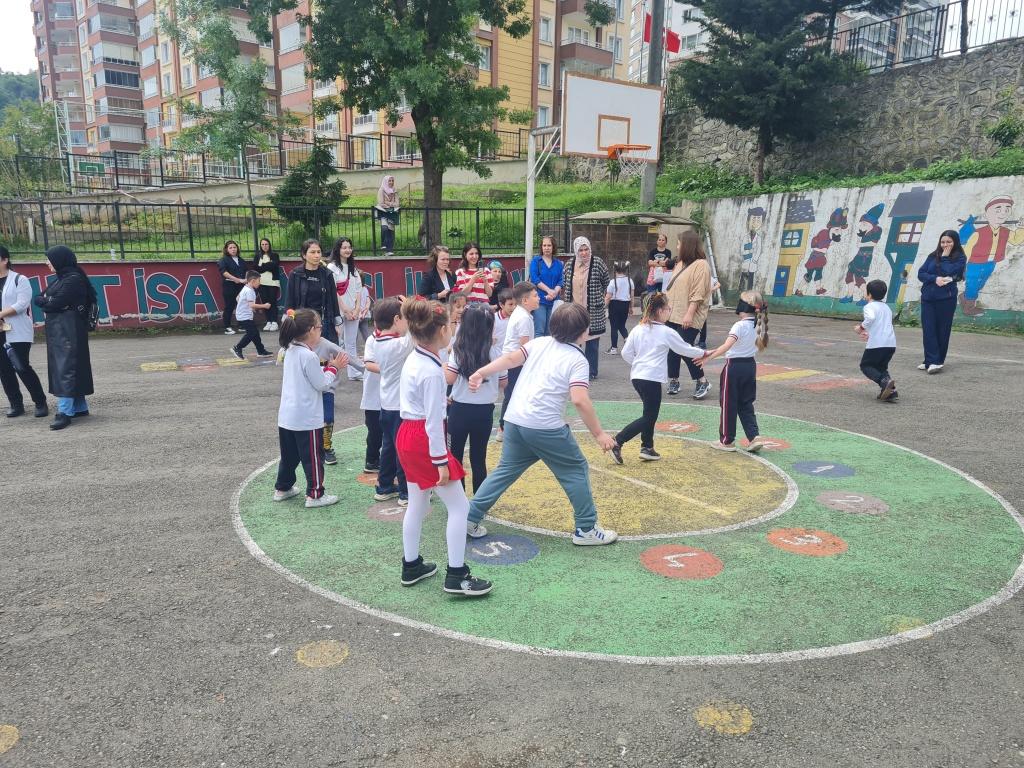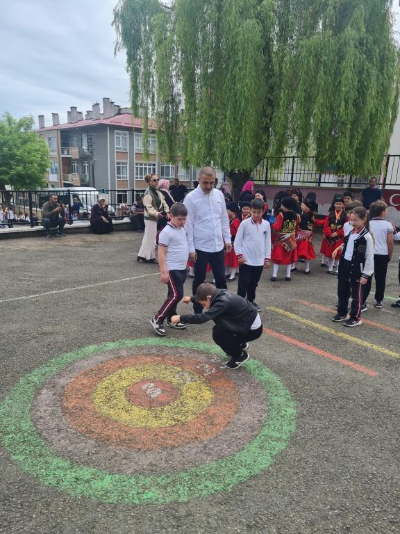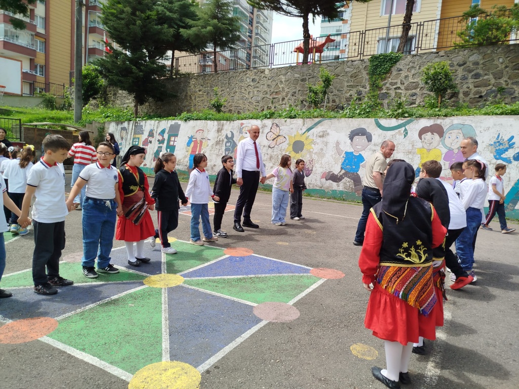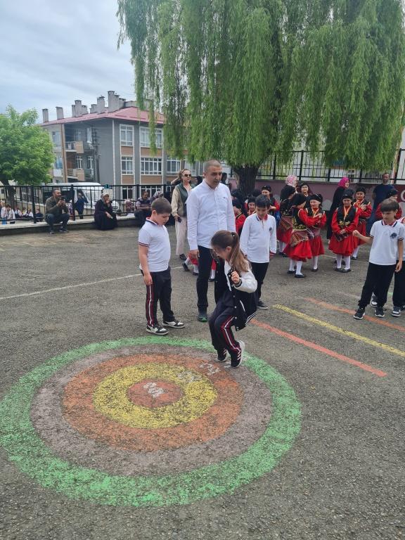 Öğrencilerimizin akademik başarılarının yanında bilişsel, duyuşsal, psikomotor, sosyal ve kültürel gelişimlerinde etkili olmasını sağlayan çocuk oyunları konusunda farkındalık oluşturmak amacıyla okulumuzda Geleneksel Çocuk Oyunları Şenliği yapıldı. 28 Mayıs Dünya Oyun Oynama Günü'nde okul bahçesinde yaptığımız Geleneksel Çocuk Oyun Şenliğimiz; okulumuz Halk Oyunları Ekibi tarafından sergilenen Giresun Yöresi Halk Oyunları gösterisiyle başladı. Giresun İl Milli Eğitim Müdür Yardımcısı Ergin AYBAR' ında katıldığı şenliğimizde; Temel Eğitim Genel Müdürlüğü tarafından yayınlanan Yüzyüze 100 Çocuk Oyunu kitabında yer alan yakar top, menekşe, körebe, halat çekme, kukalı saklambaç, köşe kapmaca, mendil kapmaca, ip atlama, yağ satarım bal satarım, davul zurna 1 2 3, deve cüce, kurt baba, topaç çevirme, tombik, yerden yüksek, mangala, beştaş, kutu kutu pense, seksek, dokuz taş vb. oyunlar ile okul bahçe zemininde bulunan çizgi oyunlarının yer aldığı oyun istasyonlarında öğrencilerimiz dönüşümlü olarak değişik oyunları oynama fırsatı buldu.