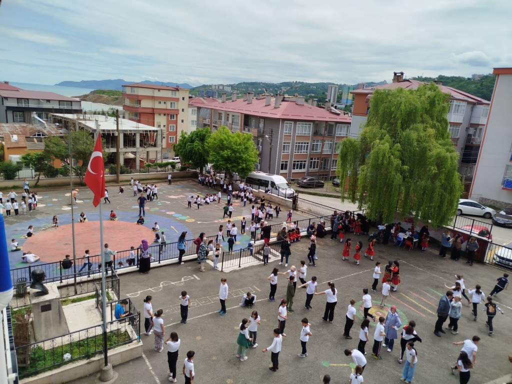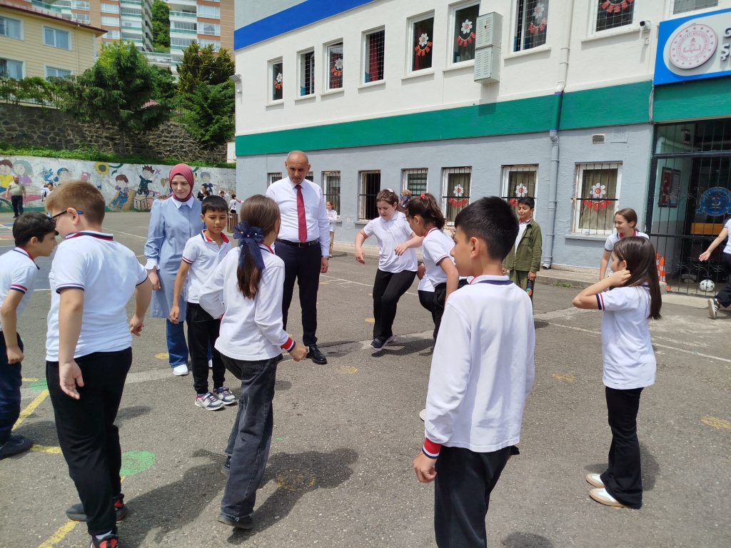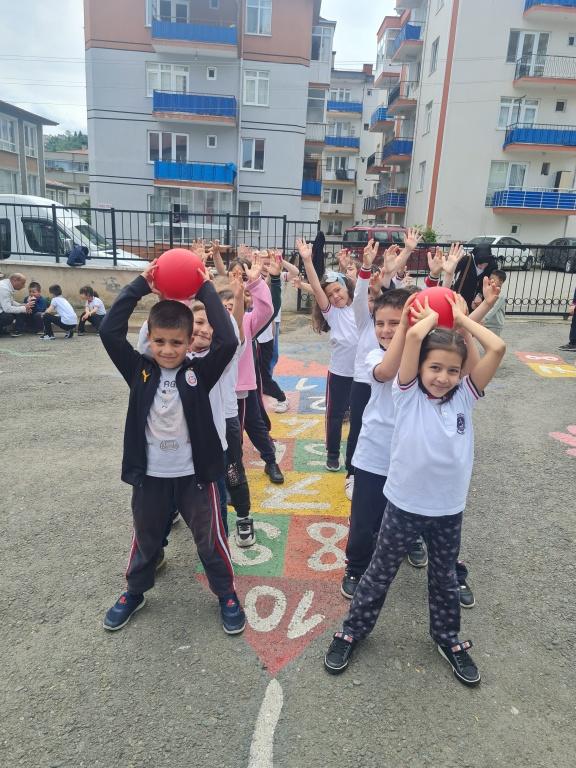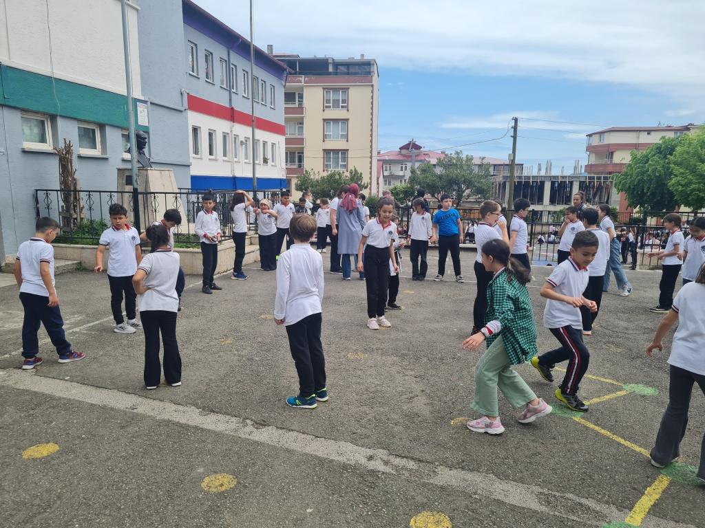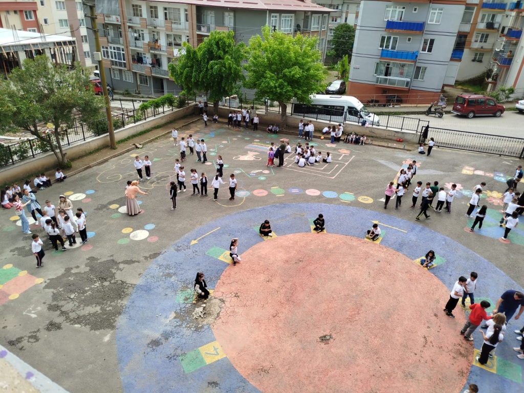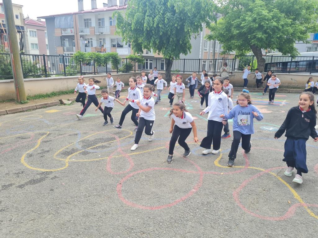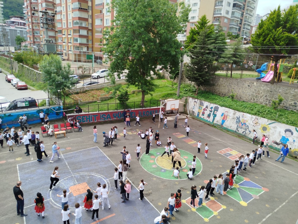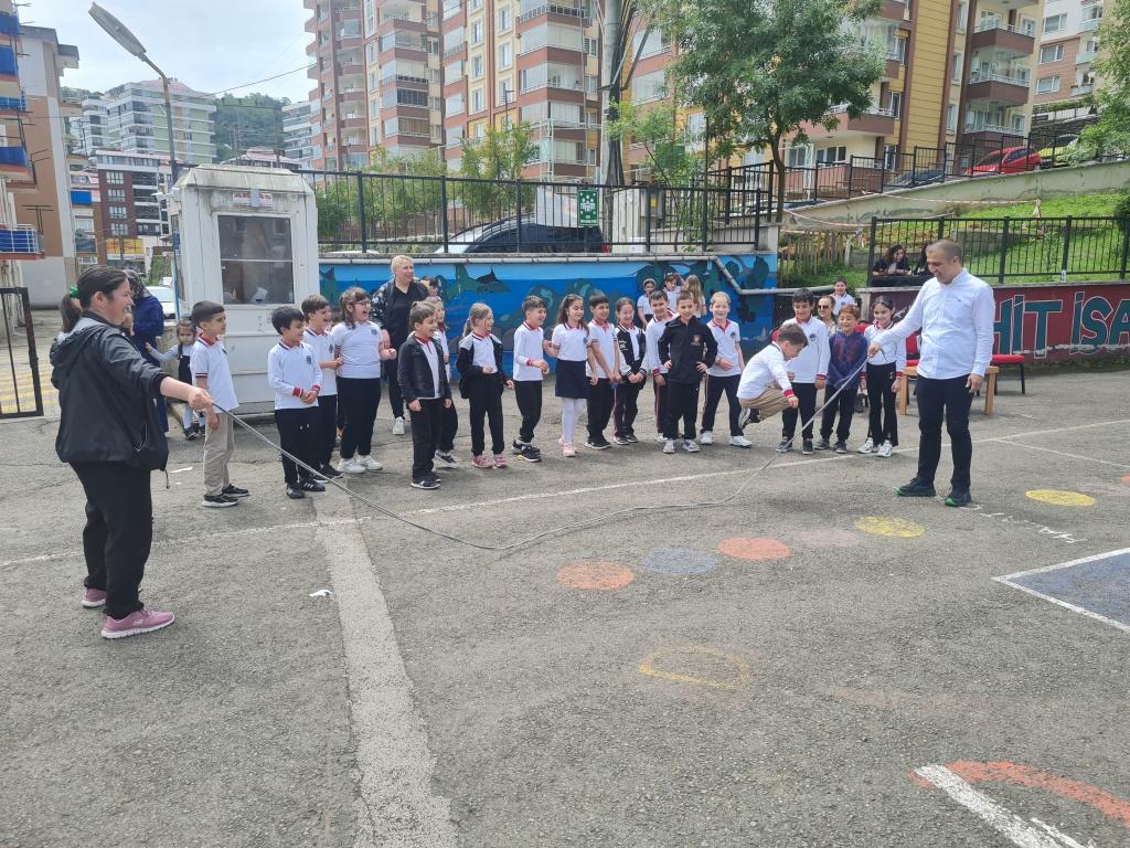 Öğrencilerimizin akademik başarılarının yanında bilişsel, duyuşsal, psikomotor, sosyal ve kültürel gelişimlerinde etkili olmasını sağlayan çocuk oyunları konusunda farkındalık oluşturmak amacıyla okulumuzda Geleneksel Çocuk Oyunları Şenliği yapıldı. 28 Mayıs Dünya Oyun Oynama Günü'nde okul bahçesinde yaptığımız Geleneksel Çocuk Oyun Şenliğimiz; okulumuz Halk Oyunları Ekibi tarafından sergilenen Giresun Yöresi Halk Oyunları gösterisiyle başladı. Giresun İl Milli Eğitim Müdür Yardımcısı Ergin AYBAR' ında katıldığı şenliğimizde; Temel Eğitim Genel Müdürlüğü tarafından yayınlanan Yüzyüze 100 Çocuk Oyunu kitabında yer alan yakar top, menekşe, körebe, halat çekme, kukalı saklambaç, köşe kapmaca, mendil kapmaca, ip atlama, yağ satarım bal satarım, davul zurna 1 2 3, deve cüce, kurt baba, topaç çevirme, tombik, yerden yüksek, mangala, beştaş, kutu kutu pense, seksek, dokuz taş vb. oyunlar ile okul bahçe zemininde bulunan çizgi oyunlarının yer aldığı oyun istasyonlarında öğrencilerimiz dönüşümlü olarak değişik oyunları oynama fırsatı buldu.