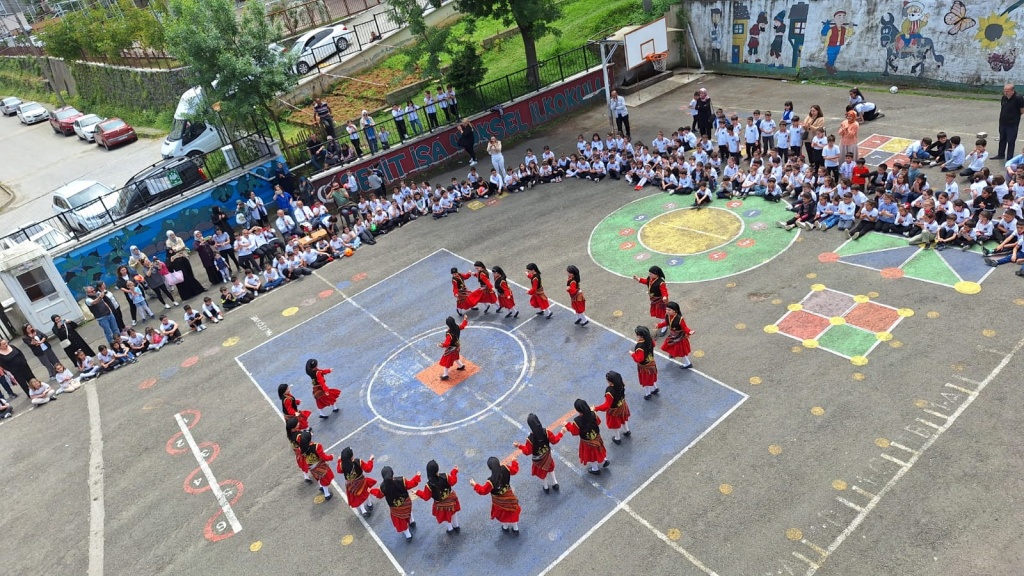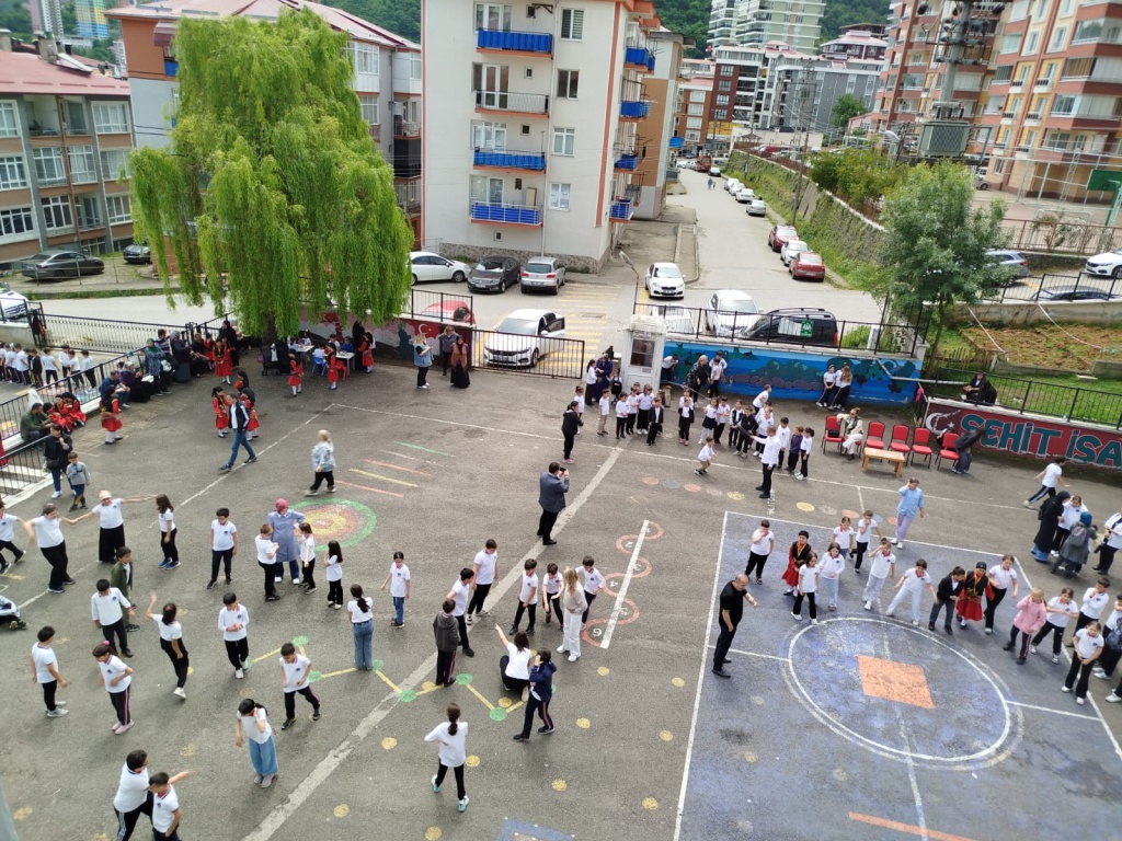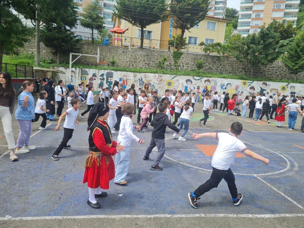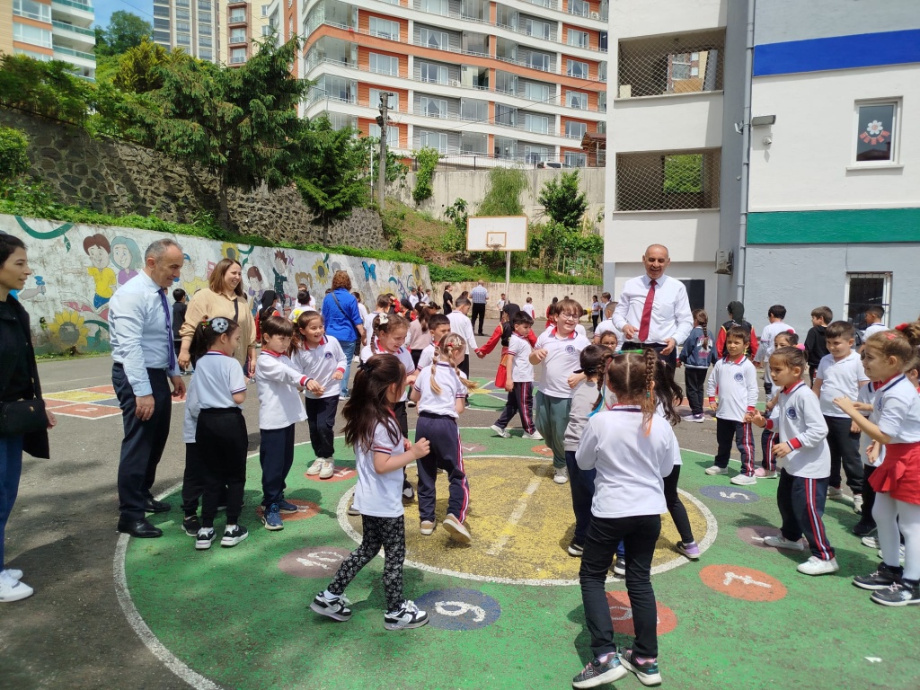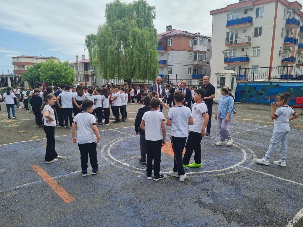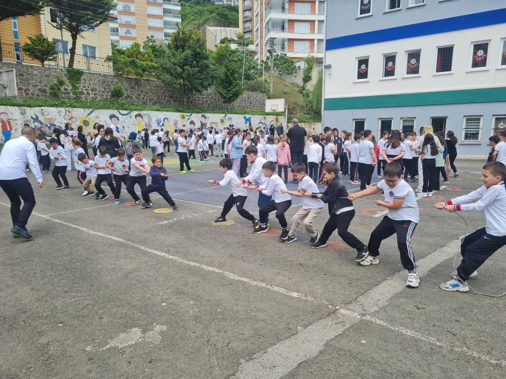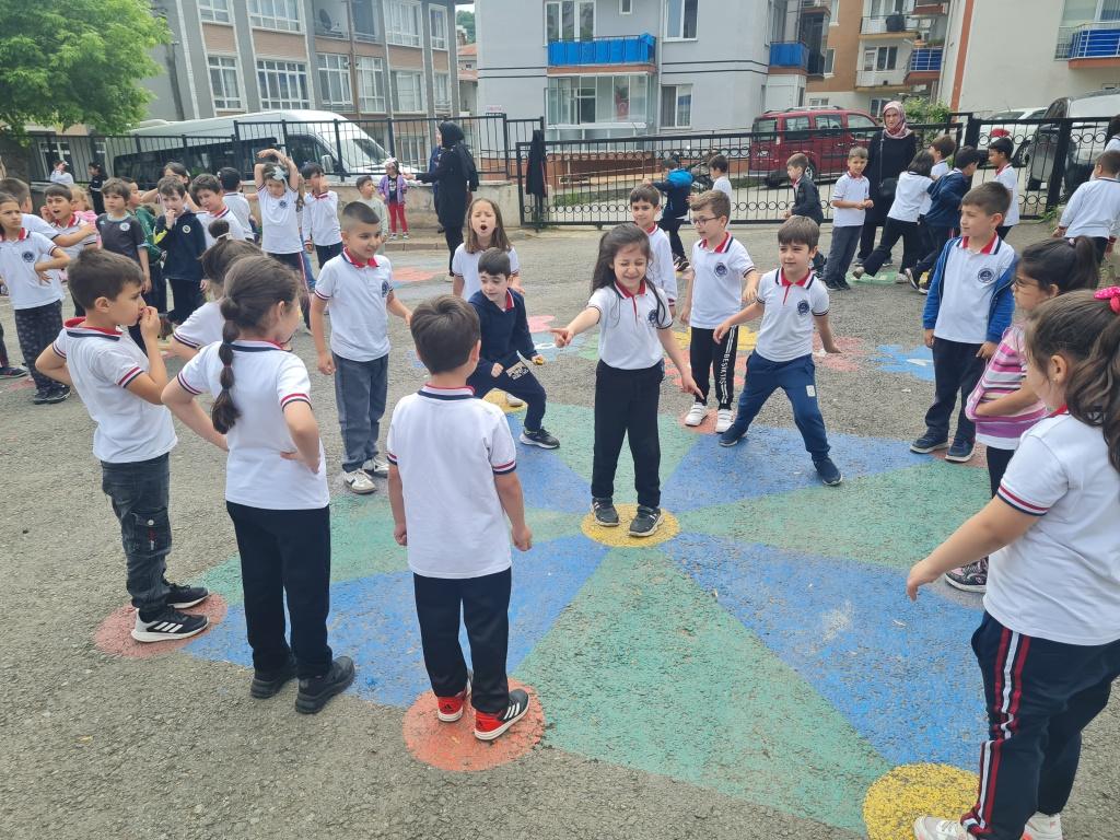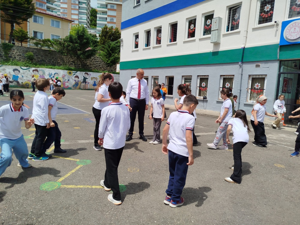 Öğrencilerimizin akademik başarılarının yanında bilişsel, duyuşsal, psikomotor, sosyal ve kültürel gelişimlerinde etkili olmasını sağlayan çocuk oyunları konusunda farkındalık oluşturmak amacıyla okulumuzda Geleneksel Çocuk Oyunları Şenliği yapıldı. 28 Mayıs Dünya Oyun Oynama Günü'nde okul bahçesinde yaptığımız Geleneksel Çocuk Oyun Şenliğimiz; okulumuz Halk Oyunları Ekibi tarafından sergilenen Giresun Yöresi Halk Oyunları gösterisiyle başladı. Giresun İl Milli Eğitim Müdür Yardımcısı Ergin AYBAR' ında katıldığı şenliğimizde; Temel Eğitim Genel Müdürlüğü tarafından yayınlanan Yüzyüze 100 Çocuk Oyunu kitabında yer alan yakar top, menekşe, körebe, halat çekme, kukalı saklambaç, köşe kapmaca, mendil kapmaca, ip atlama, yağ satarım bal satarım, davul zurna 1 2 3, deve cüce, kurt baba, topaç çevirme, tombik, yerden yüksek, mangala, beştaş, kutu kutu pense, seksek, dokuz taş vb. oyunlar ile okul bahçe zemininde bulunan çizgi oyunlarının yer aldığı oyun istasyonlarında öğrencilerimiz dönüşümlü olarak değişik oyunları oynama fırsatı buldu.